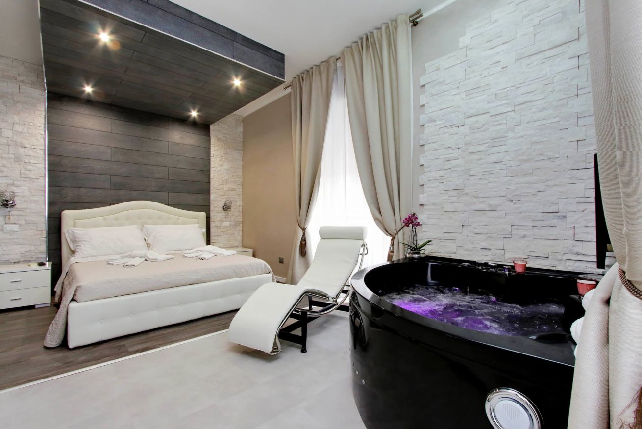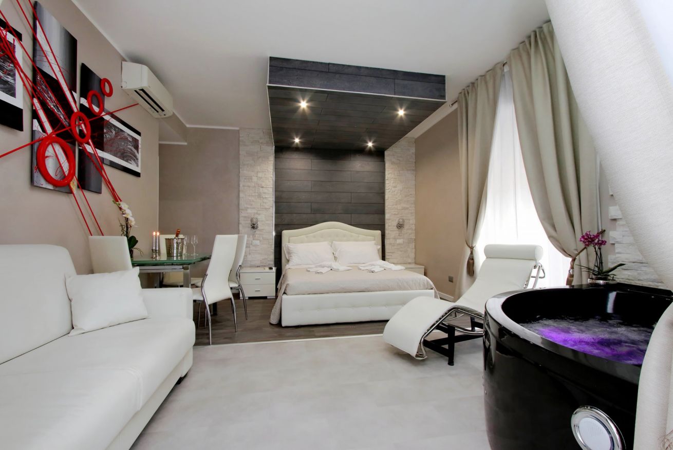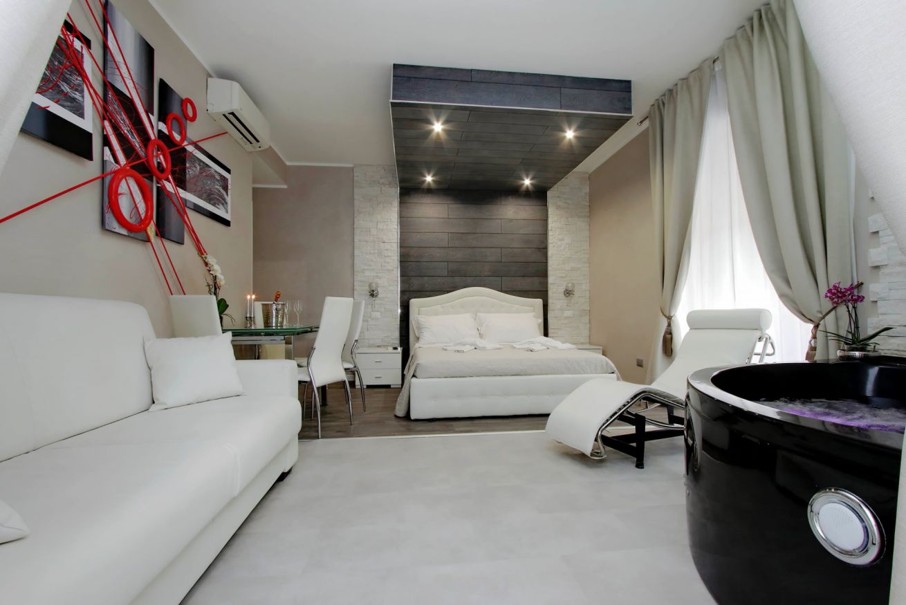 Con un design contemporaneo e accogliente, la rendono ideale per una coppia in luna di miele, o per chi vuole fare una fuga d’amore nella città eterna. Il confort del letto, e l’elegante vasca idromassaggio offrono il massimo relax e benessere. La sua grandezza di 30 mq offre alla camera l’opportunità di ospitare fino a 4 persone, disponendo tra l’altro di un divano-letto confortevole. Dotata di ogni confort, la camera dispone di bagno con doccia, asciugacapelli, frigobar, climatizzazione, WiFi gratuita e TV satellitare.