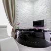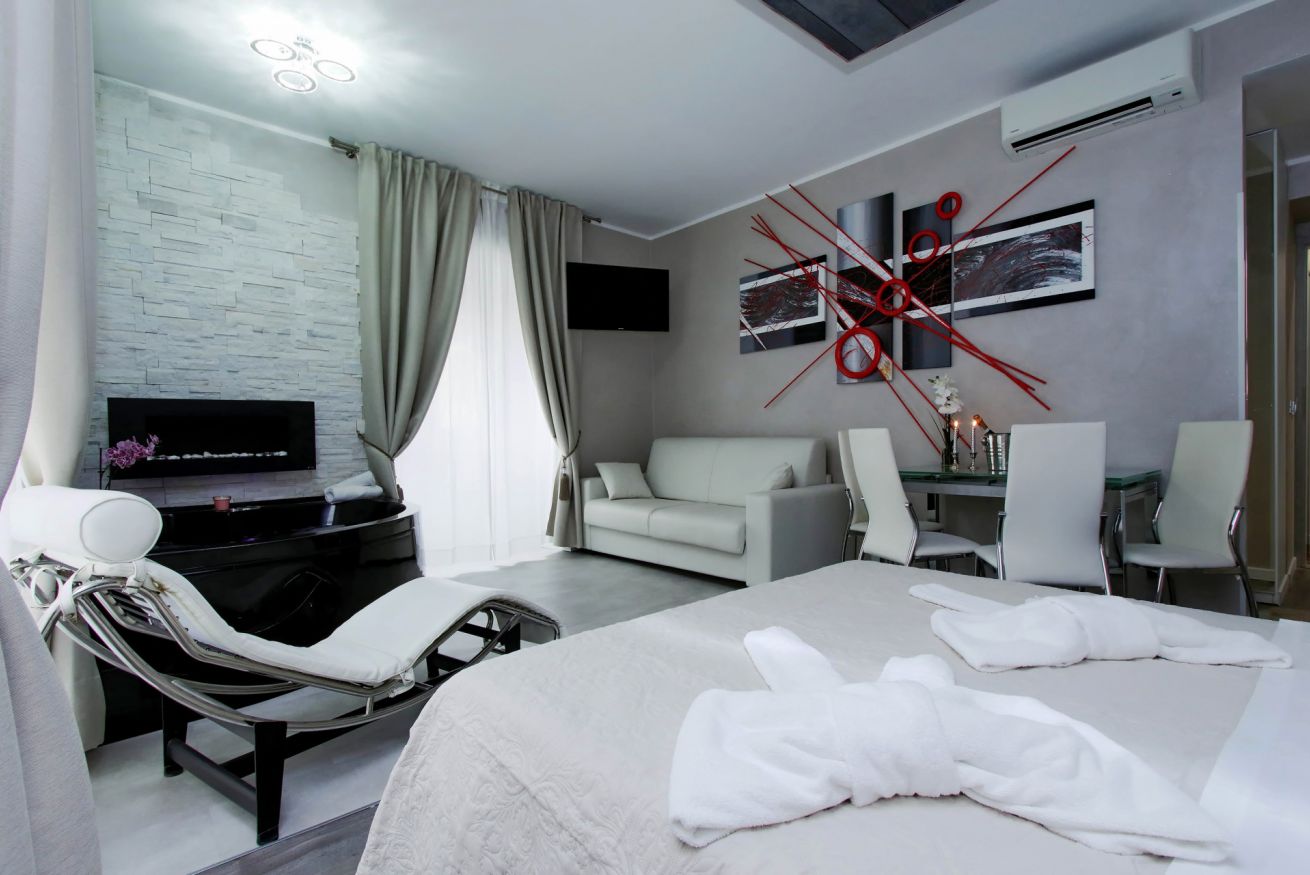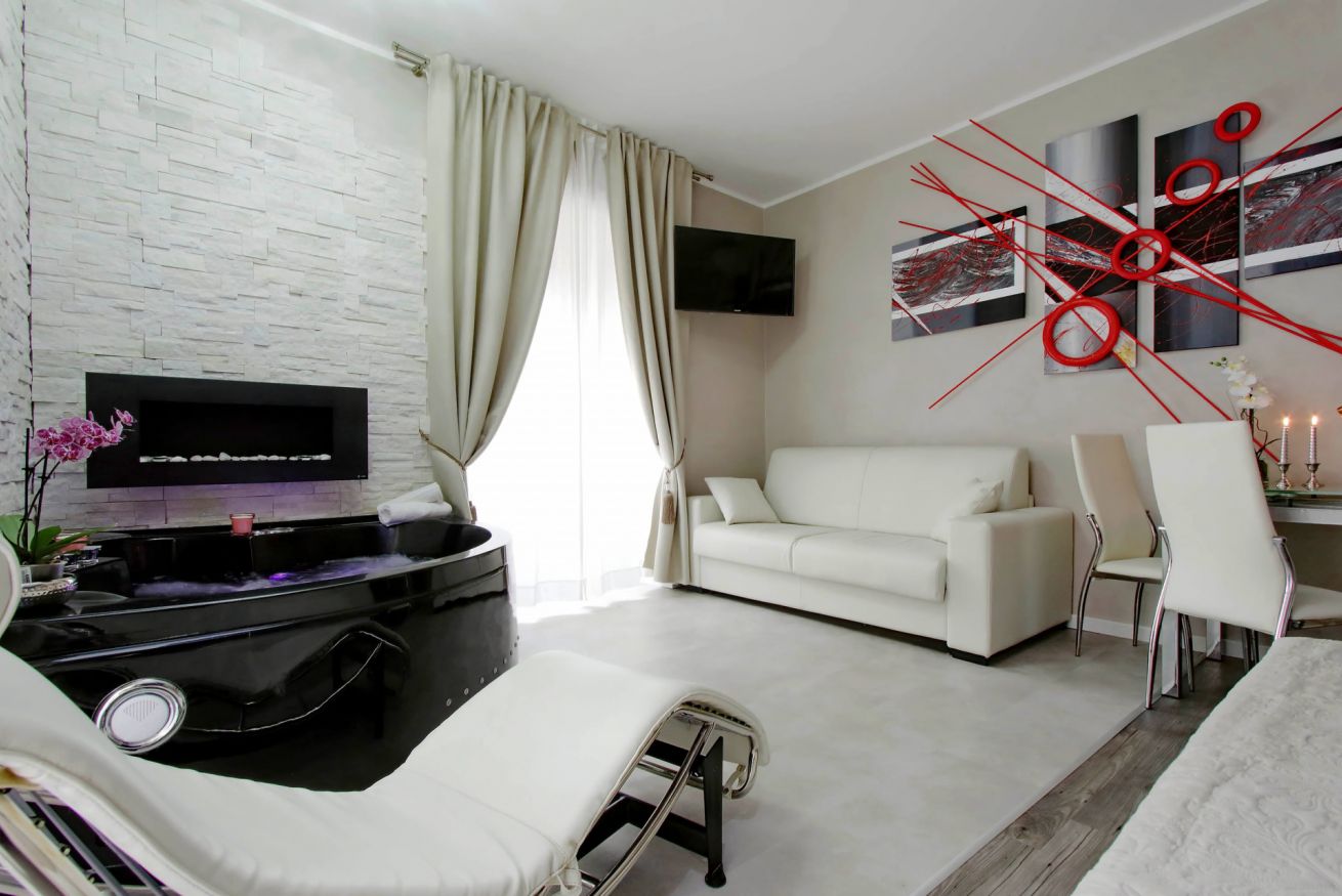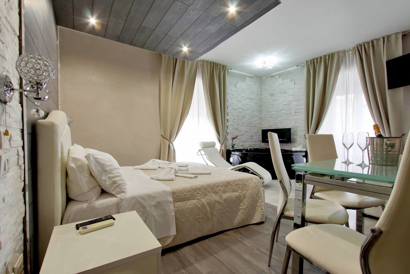 Con un design contemporaneo e accogliente, la rendono ideale per una coppia in luna di miele, o per chi vuole fare una fuga d’amore nella città eterna. Il confort del letto, e l’elegante vasca idromassaggio offrono il massimo relax e benessere. La sua grandezza di 30 mq offre alla camera l’opportunità di ospitare fino a 4 persone, disponendo tra l’altro di un divano-letto confortevole. Dotata di ogni confort, la camera dispone di bagno con doccia, asciugacapelli, frigobar, climatizzazione, WiFi gratuita e TV satellitare.