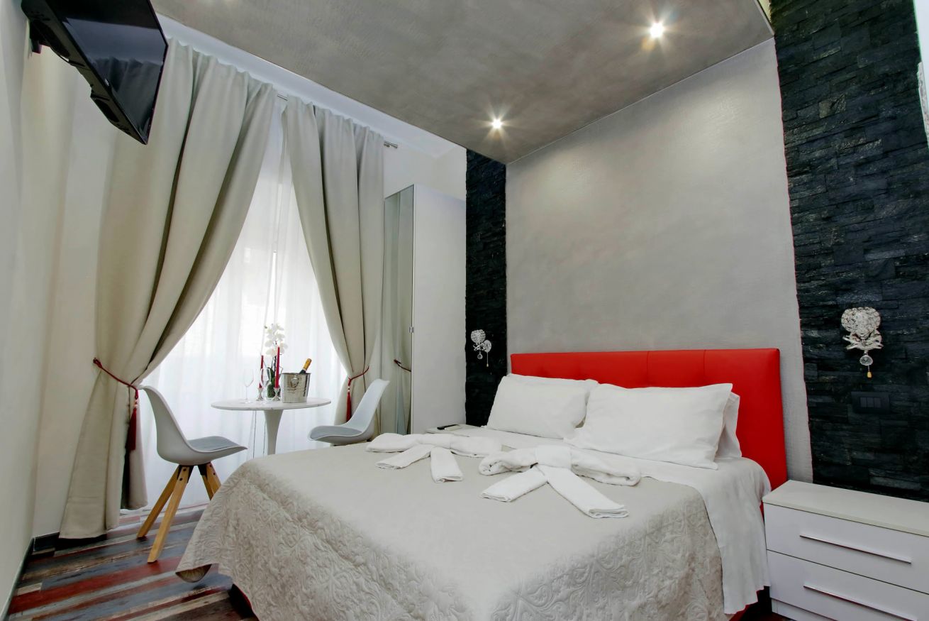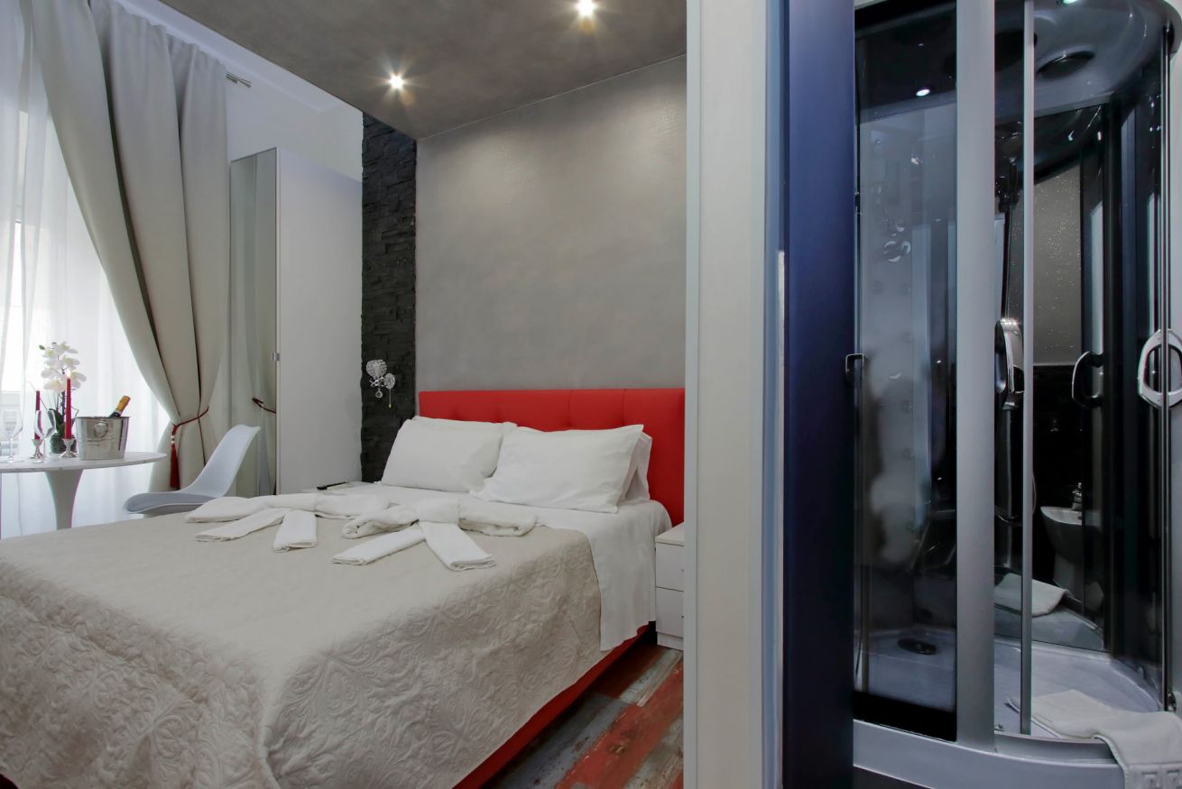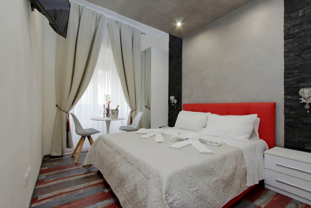Piccola camera di 17 mq con letto alla francese, arredato con gusto e attenzione per i particolari, ideale per chi per lavoro, o per vacanza, si trovi da solo a visitare la città.