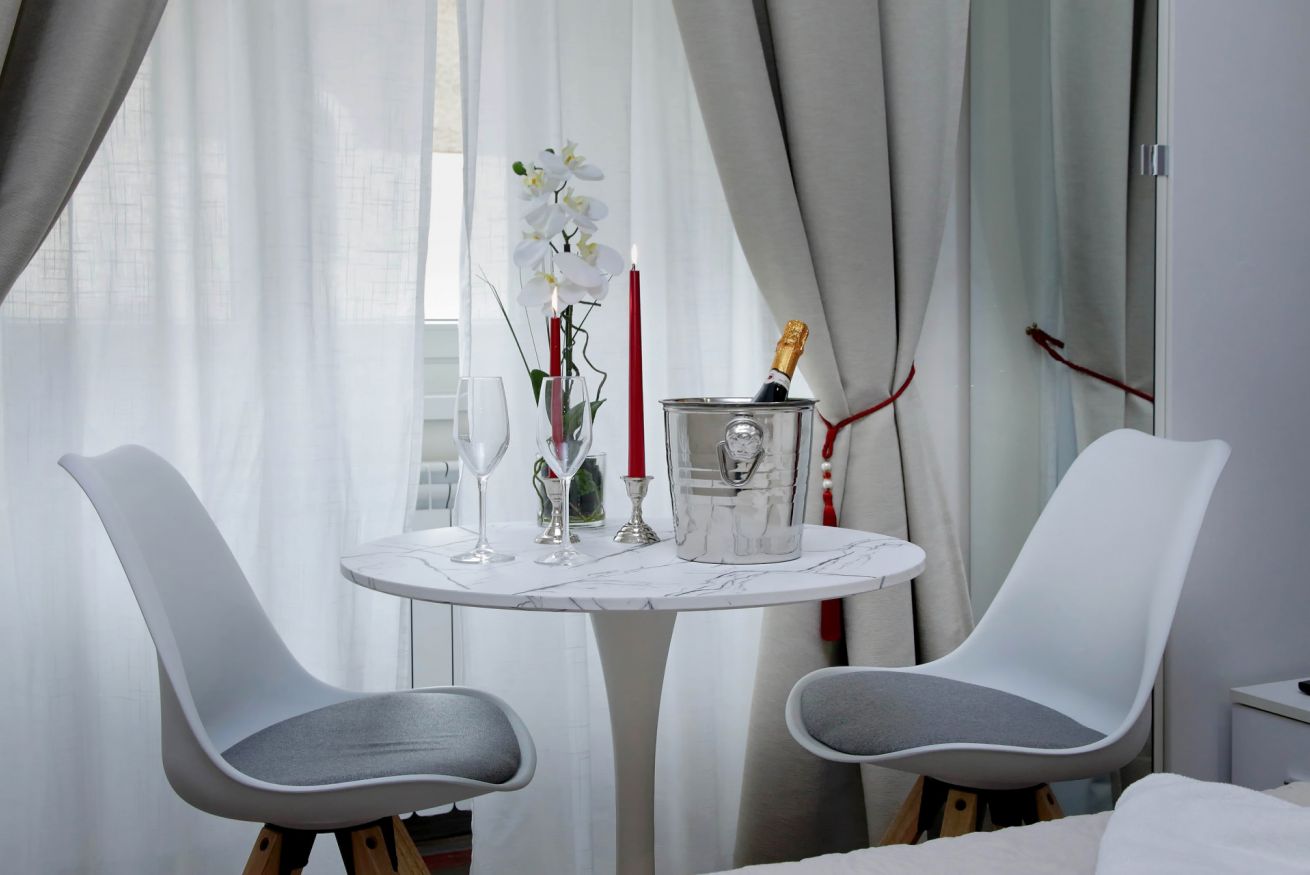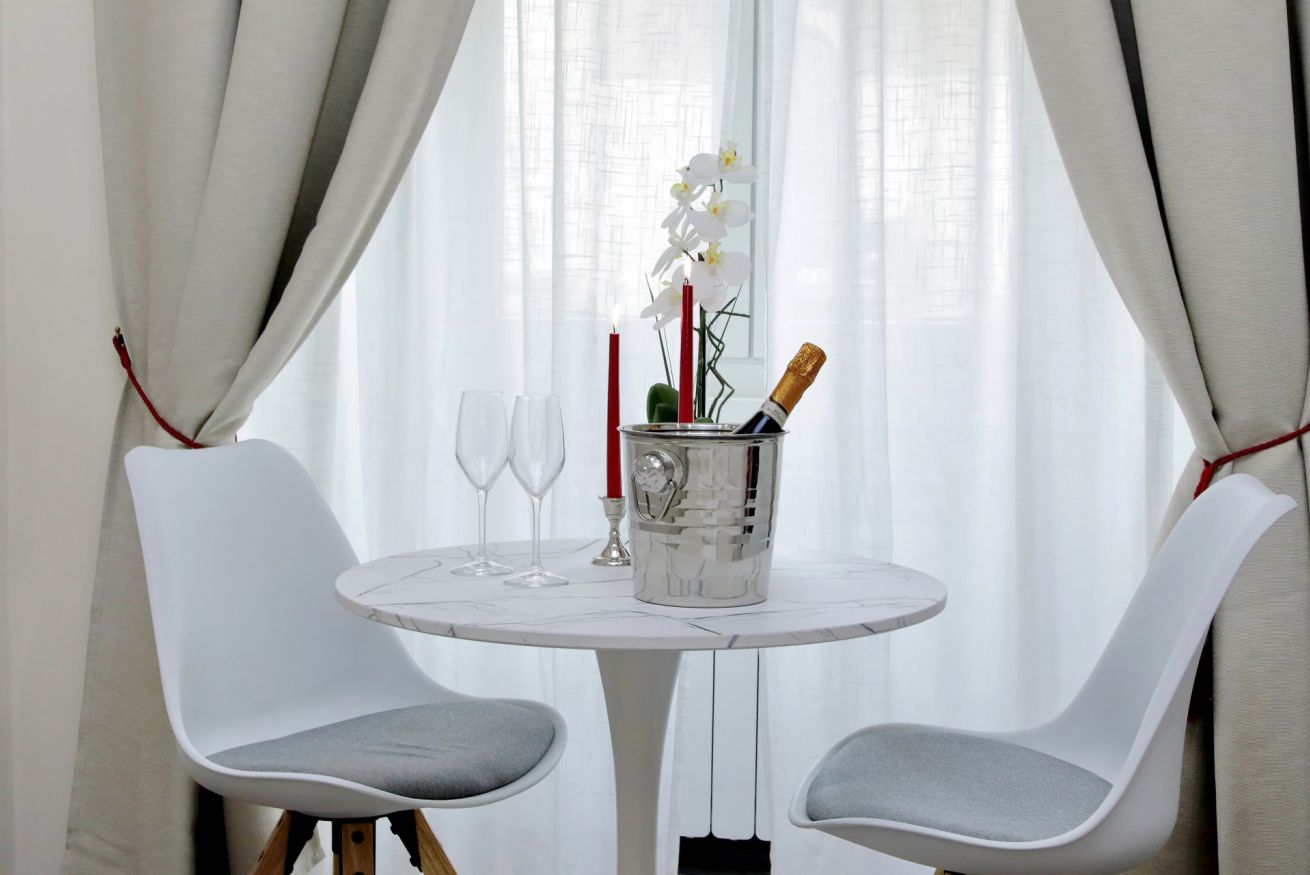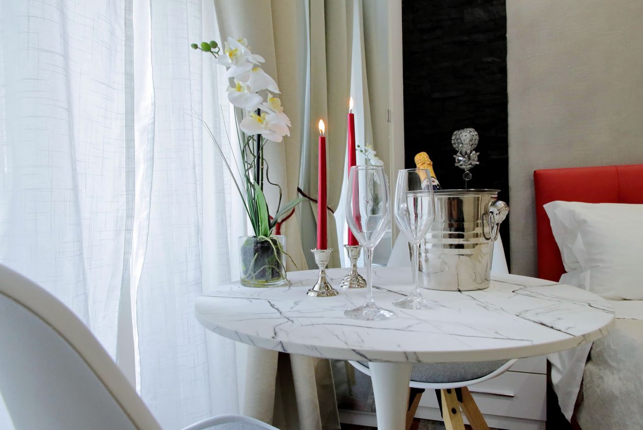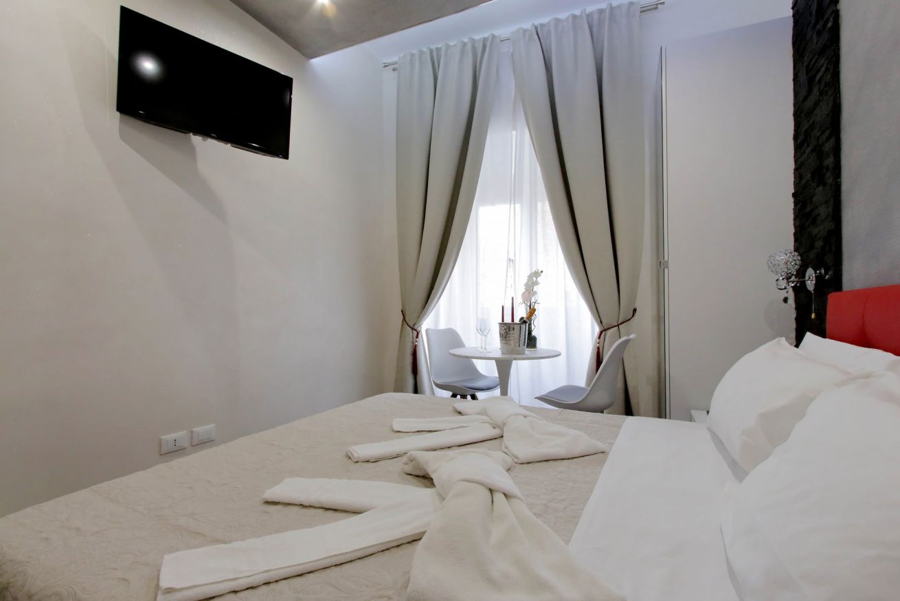 Piccola camera di 17 mq con letto alla francese, arredato con gusto e attenzione per i particolari, ideale per chi per lavoro, o per vacanza, si trovi da solo a visitare la città.